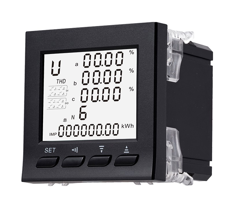 液晶諧波電力儀表是針對電力系統(tǒng)、工礦企業(yè)、公共設(shè)施、智能大廈的電力監(jiān)控需求而設(shè)計(jì)的。它能測量所有的常用電力參數(shù),包括電流、電壓、頻率、功率因素、有功功率、無功功率、有功電能、無功電能等,帶開關(guān)量輸入輸出、電能脈沖輸出和RS485通訊接口,可實(shí)現(xiàn)數(shù)據(jù)的遠(yuǎn)程傳輸。并可選配模擬量輸出、諧波含量分析、復(fù)費(fèi)率電能統(tǒng)計(jì)、事件記錄等多個功能;產(chǎn)品目前廣泛應(yīng)用于能源管理系統(tǒng)、變電站自動化、配電網(wǎng)自動化、小區(qū)電力監(jiān)控、工業(yè)自動化、智能建筑、智能配電盤及開關(guān)柜中。